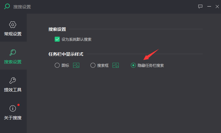 方法二、点击小智搜搜主面板界面右上角的“≡”,选择“任务栏搜索设置”后,再点击“隐藏任务栏搜索”。