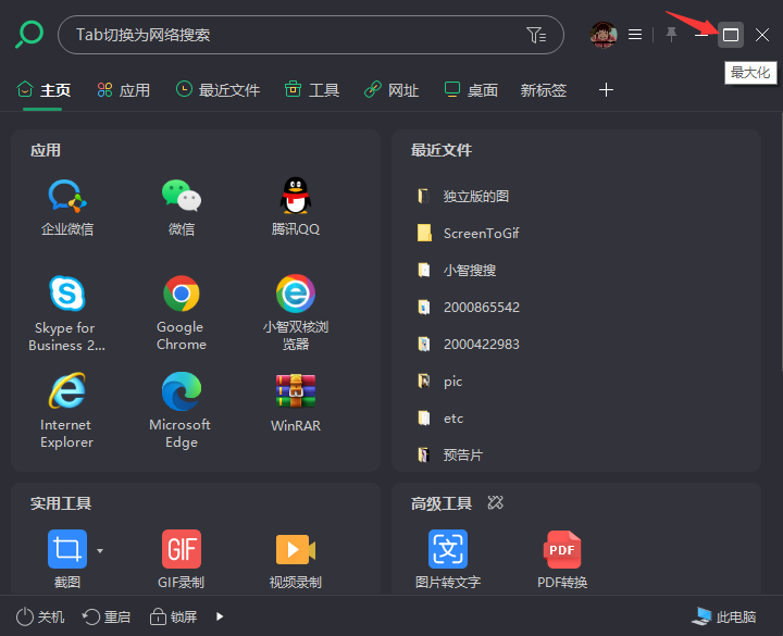 点击面板右上角的“最大化”按钮或双击面板顶部,可以将小智搜搜切换到全屏模式,方便查看和操作。